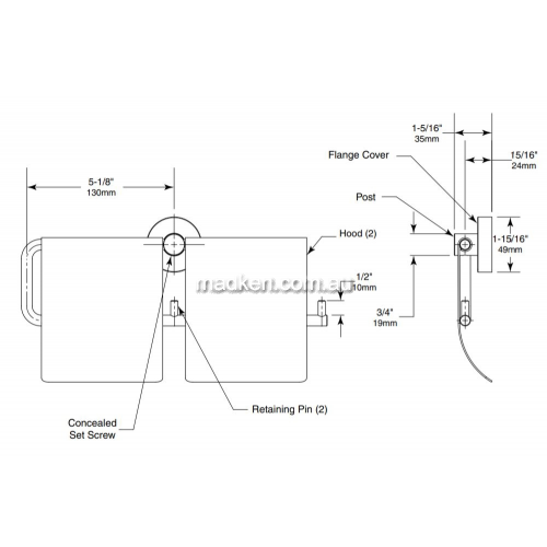 If you require futher product information about the B548 Double Toilet Roll Holder With Hood, Bobrick or any Madken Online Shopping, please do not hesitate to contact Madken Holdings Pty Ltd and our customer service staff will assist you in any way possible.