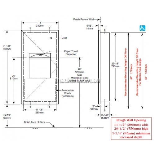 | B36903 | Recessed | 330mm [W] x 790mm [H] x 90mm [D] | 3.00 (kgs) | Satin Stainless Steel |