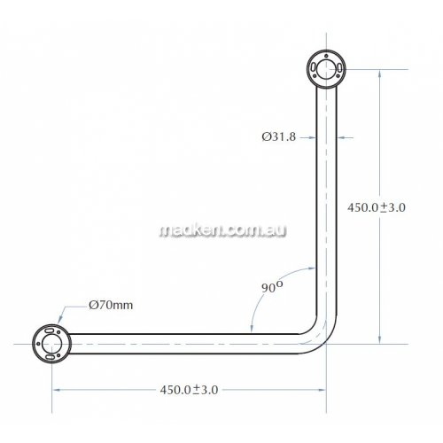 Metlam Mlr101 Toilet Grab Rail 840mm X 700mm Left Hand 30 Degree