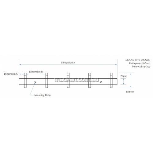 | 9945 | 5 Hooks | 122W x 19H x 7D (cm) | 4.00 (kgs) | Satin Stainless Steel |