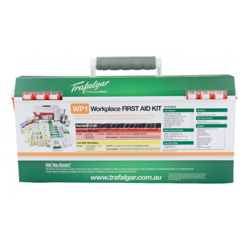 Did you know? Features: Case dimensions: Kit Contents: Cuts & Abrasions: -Adhesive Premium Fabric Strips x 50 -Combine Dressing 10cm x 20cm x 1 -Gauze Pieces (Sterile) 7.5cm x 7.5cm Pk5 x 3 -Non-Adherent Dressing 5cm x 5cm x 6 -Non-Adherent Dressing 7.5cm x 10cm x 3 -Non-Adherent Dressing 10cm x 10cm x 1 -Wound Dressing No.14 (Medium) x 1 -Wound Dressing No.15 (Large) x 1 -Wound Wipes x 10 Sprains, Fractures & Bruising: -Bandage - Conforming 5cm x 1.8m x 3 -Bandage - Conforming 7.5cm x 1.8m x 3 -Bandage - Crepe Medium Support 10cm x 2m x 1 -Instant Cold Pack x 1 -Triangular Bandage Disposable 110cm x 155cm x 2 Burns, Bites and Stings: -Antiseptic Spray 50ml x 1 -Hydrogel Sachet 3.5g x 5 Essentials: -Adhesive Non-Woven Tape 2.5cm x 5m x 1 -Biohazard Bag x 1 -First Aid Booklet x 1 -Forceps - Disposable x 1 -Nitrile Gloves Pack (Pairs) x 5 -Pen x 1 -Plastic Bag Zip Lock (Small) x 2 -Plastic Bag Zip Lock (Medium) x 2 -Plastic Bag Zip Lock (Large) x 2 -Register Of Injuries Book x 1 -Safety Pins - Assorted x 12 -Safety Sign First Aid - Self Adhesive 250mm x 180mm x 1 -Scissors x 1 -Splinter Probe - Disposable x 10