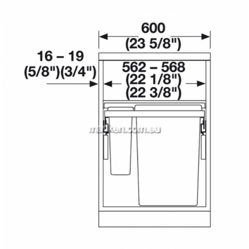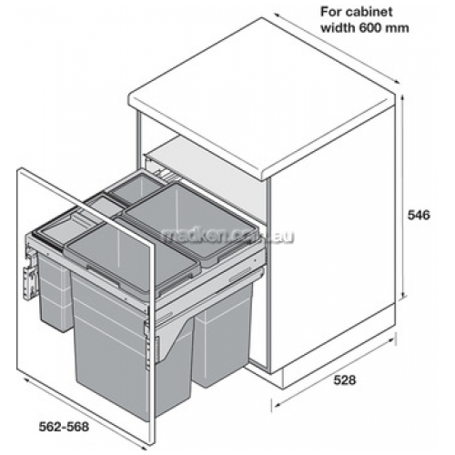 Key Features of the Hafele Hailo Euro Cargo ST60 Four-Bin Waste Sorter: Note: The image may show a similar article Images provided by Hafele Australia Pty. Ltd
