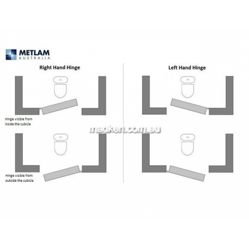 Options: ANMB-MODA-LH/C : Left Hand, Closed, Single ANMB-MODA-RH/C : Right Hand, Closed, Single ANMB-MODA-LH/O : Left Hand, Open, Single ANMB-MODA-RH/O : Right Hand, Open, Single Not sure how to determine if you need a Left Hand or Right Hand Hinge? What does Hold Open or Hold Closed Mean? Key Features of the Metlam Moda Spring Hinge: Product Data: