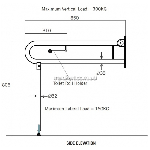 RBARBA BARIATRIC RBA4007 DROP DOWN RAIL WITH TOILET ROLL HOLDER AND LEGFor Bariatric Applications Holds Up To 300kg of Downwards WeightAssociated CategoriesProduct Information